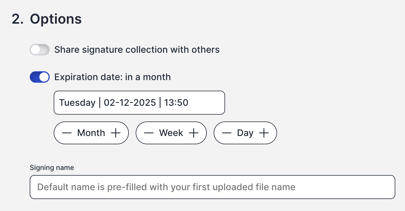 - Team Sharing: Choose whether to share this signature request with your team members (admin only)