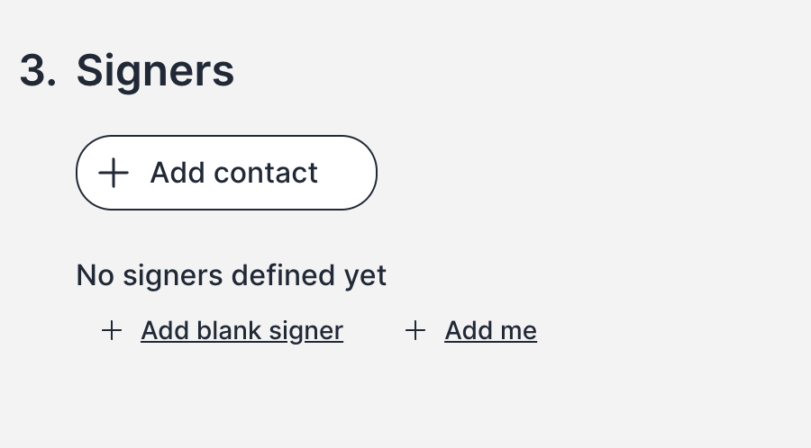 - New Signer: Add a new signer manually and optionally save them to your contacts for future use